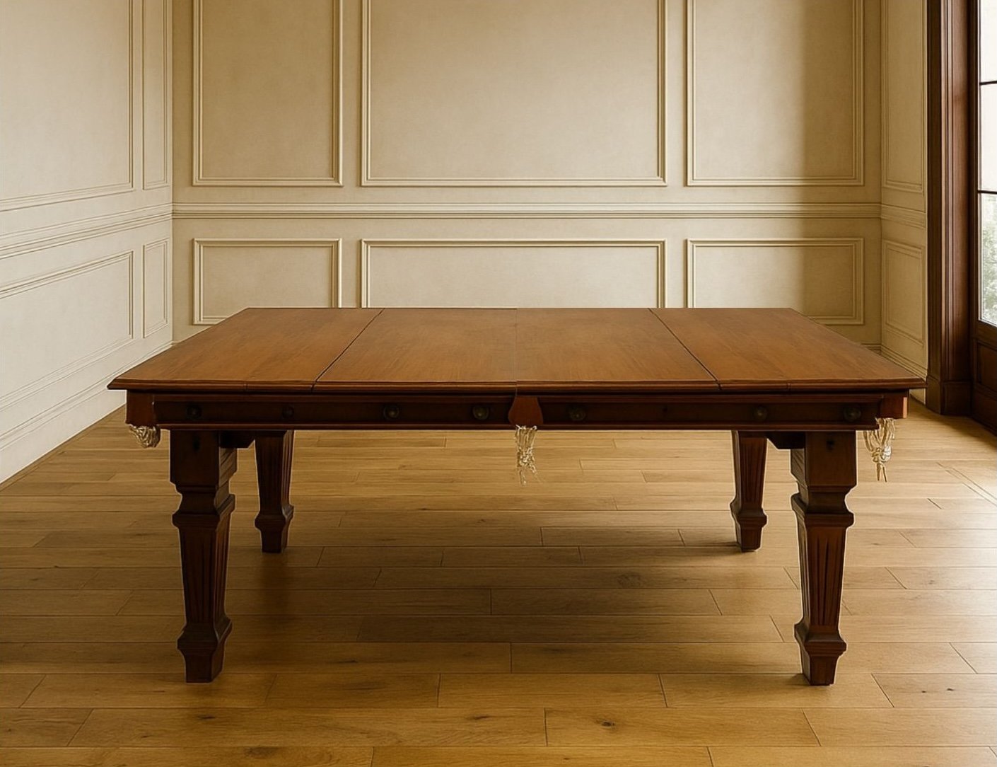 Biliardo in mogano trasformabile in tavolo da pranzo, con coperture originali. Tramite l’aggiunta di coperture originali in legno sul piano di gioco, potrete trasformare il biliardo in un raffinatissimo tavolo da pranzo. Il tavolo è dotato di un meccanismo che permette di regolarlo per raggiungere l’altezza ideale per il gioco (più alta rispetto alla classica altezza da pranzo). È dotato di piedini regolabili che favoriscono la messa in bolla del piano da gioco. Il piano da gioco è costituito da un’unica lastra in ardesia rivestita con un panno professionale in lana, per garantire un alta qualità di gioco.Metodi di pagamento