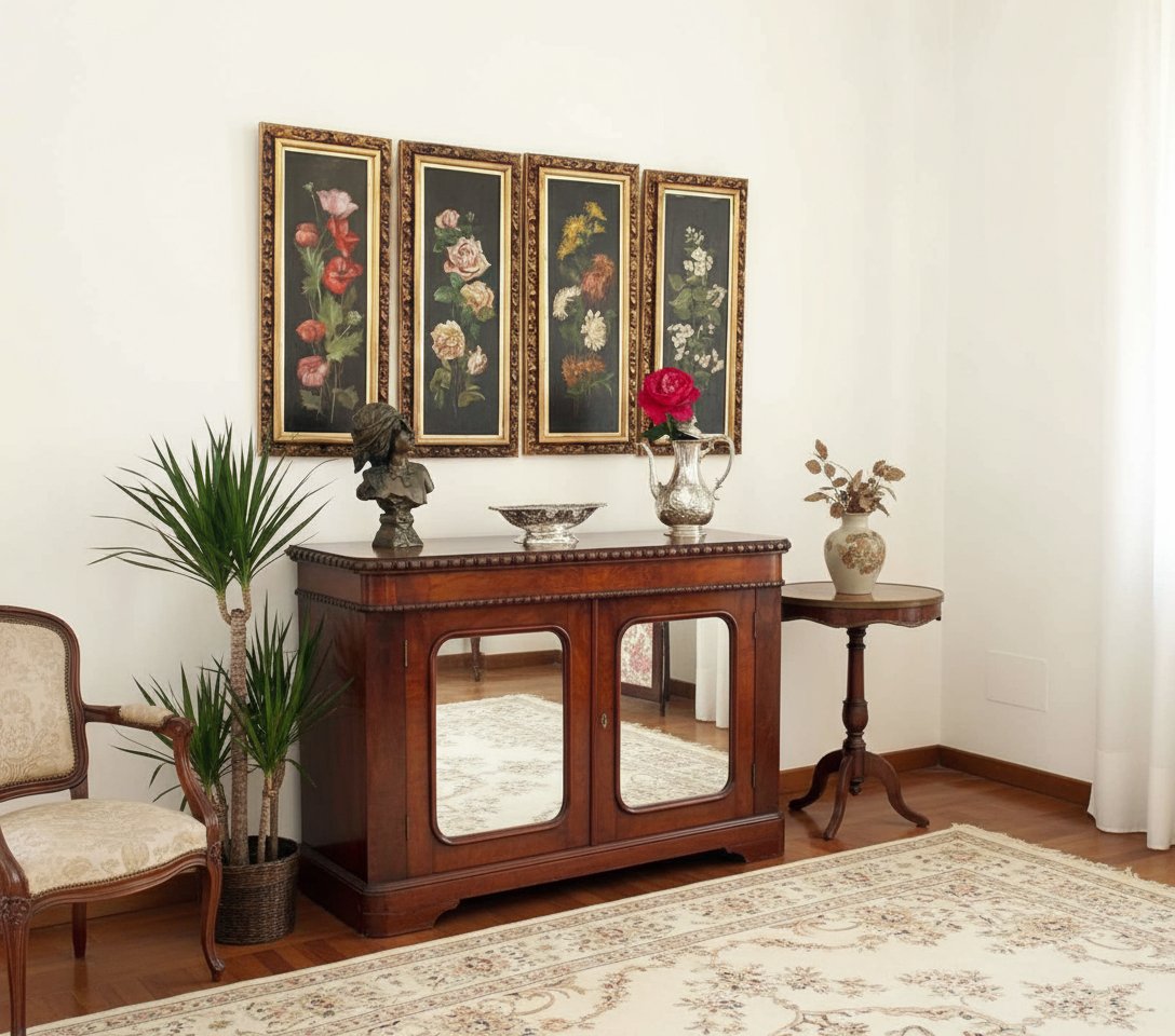 Originale quartetto di olii su tela, che rappresenta le quattro stagioni, da sinistra: primavera, estate, autunno e inverno. Molto particolare la misura delle tele che si prestano ad arredare gli spazi più disparati.Metodi di pagamento