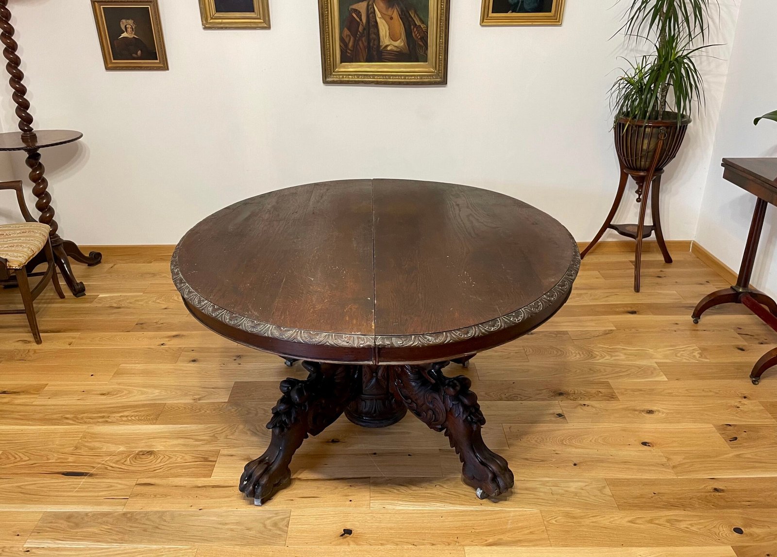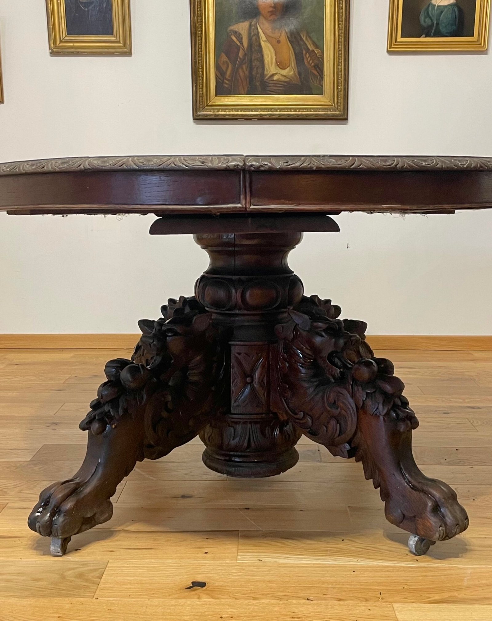 Tavolo da pranzo in rovere allungabile con gamba intagliata. Il tavolo si allunga fino a una lunghezza di 350 cm.Metodi di pagamento