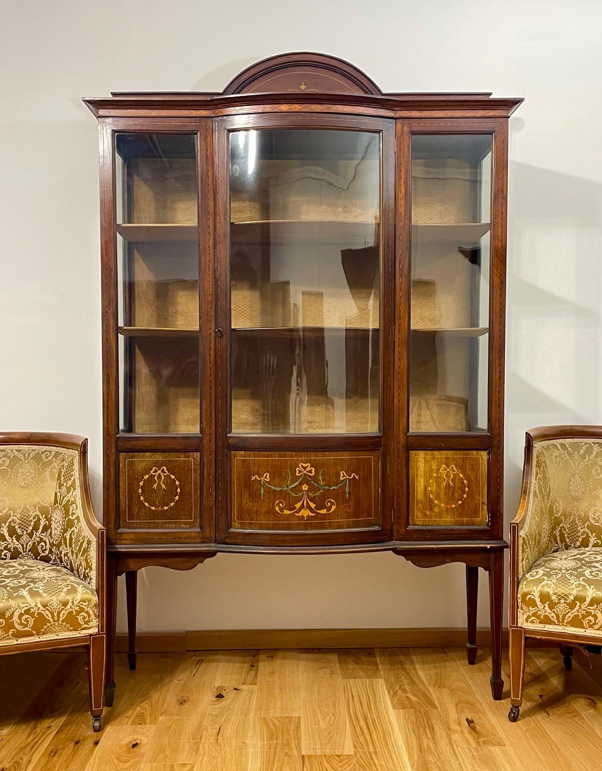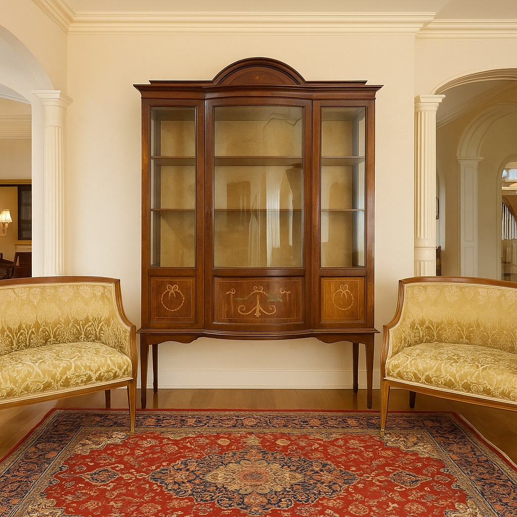 Vetrina inglese della fine dell’ottocento, in mogano, finemente intarsiata. Le misure sono molto interessanti è infatti poco profonda solo 41 cm di massima, ha inoltre i vani chiusi nella parte inferiore, comodi per riporre cose che non si vogliono in vista, e la parte superiore a vetri, tutti originali, dove esporre con garbo il vostro servizio preferito o le vostre collezioni.Metodi di pagamento